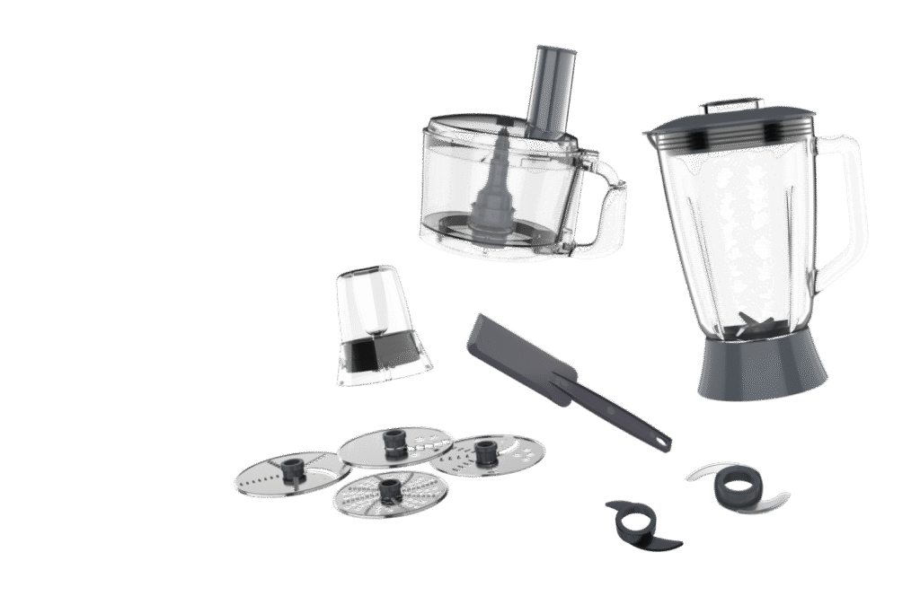 این غذاساز شامل یک ظرف شیشهای ۱.۵ لیتری برای مخلوط کردن، چهار دیسک استیل ضد زنگ (SUS) برای برش و خرد کردن، یک تیغه مخلوطکن پلاستیکی و یک تیغه خردکن استیل ضد زنگ است – هر آنچه برای تهیه غذای حرفهای و با کیفیت نیاز دارید.